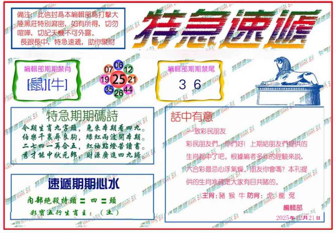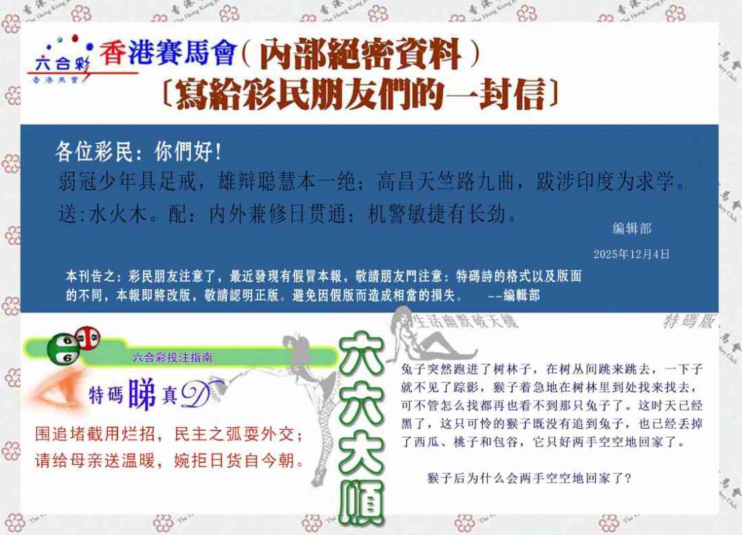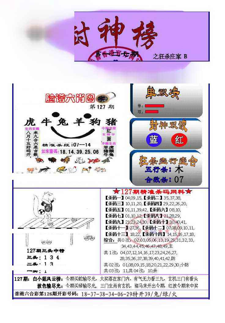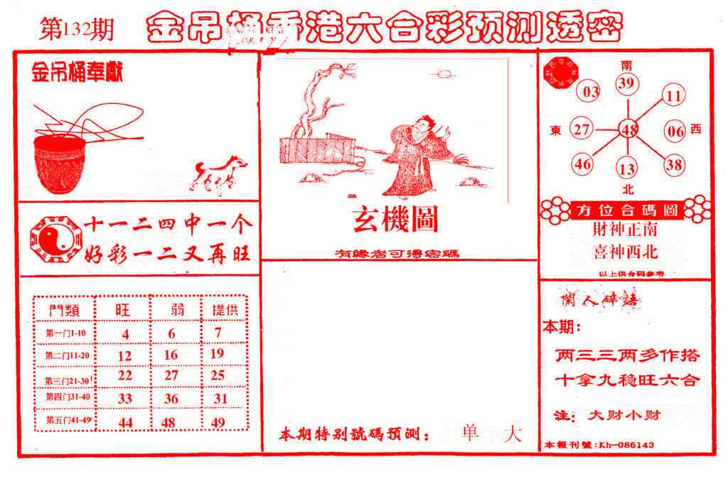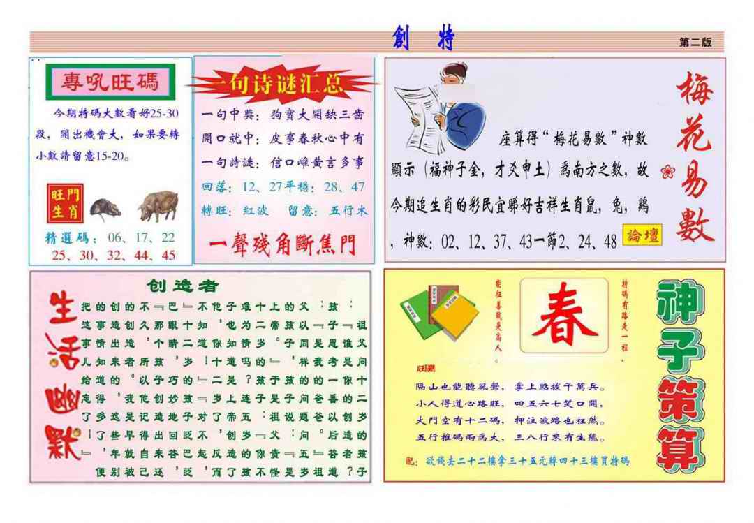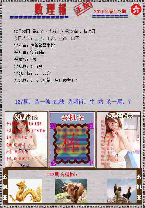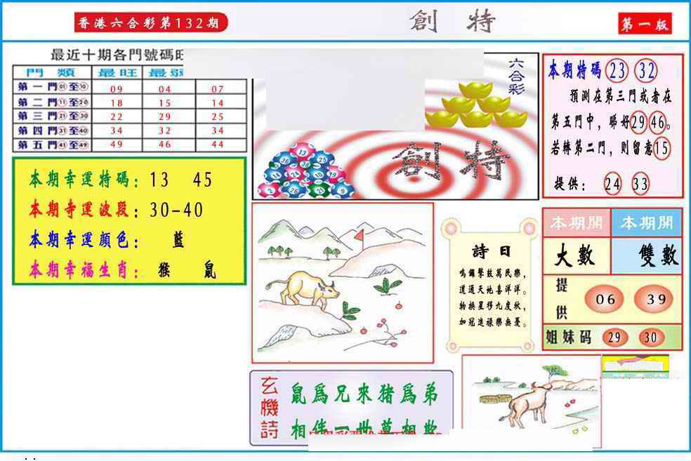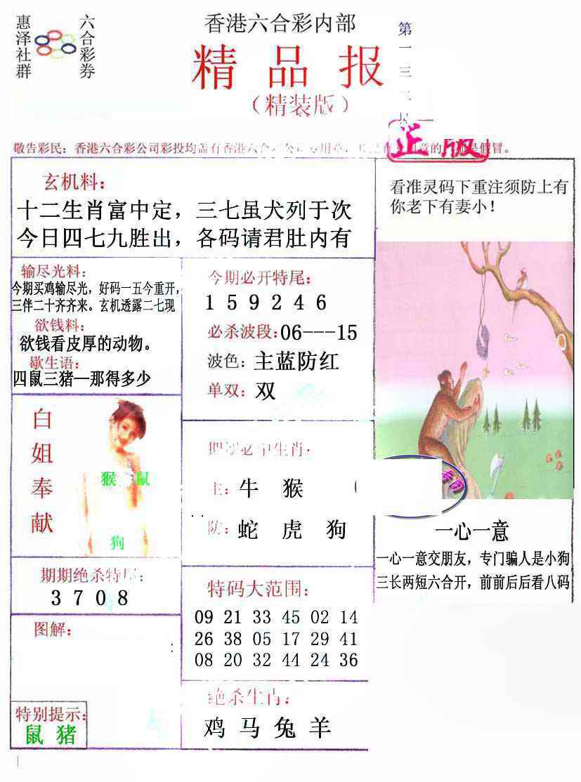 063 六合禅机A 064 六合禅机B 069 特 新 报A 070 特 新 报B