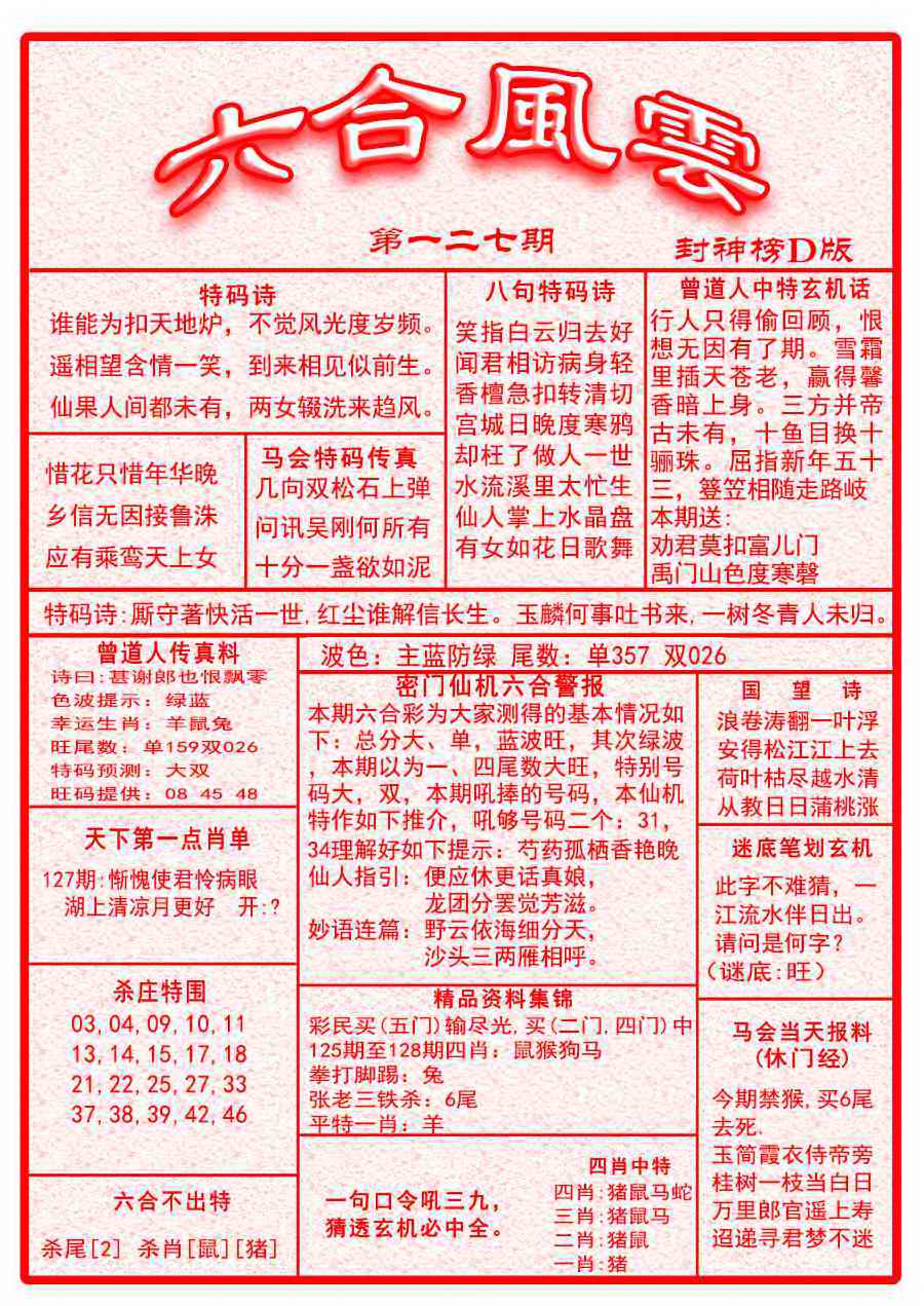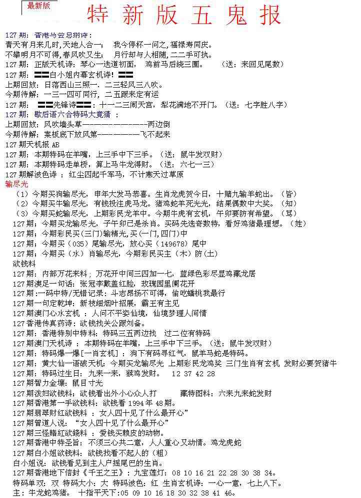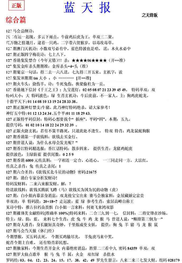 1581 精准传真报 1582 新天线宝宝内幕报 1583 当期狗仔版 1585 白姐泄密