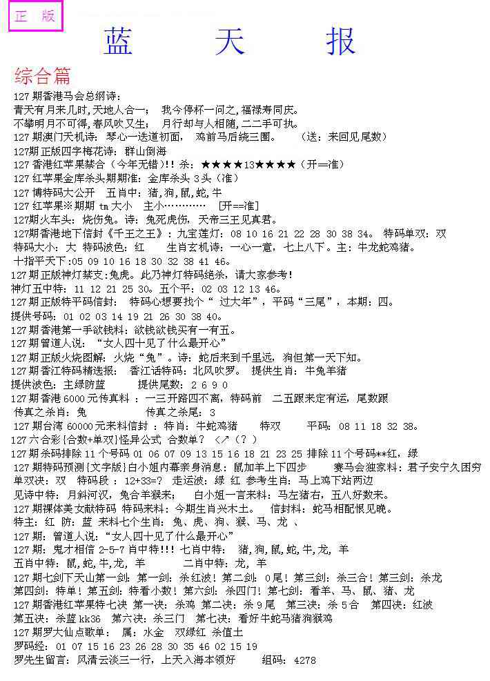 273 白姐加大版A 274 白姐加大版B 271 六合码讯A 284 曾内幕精华