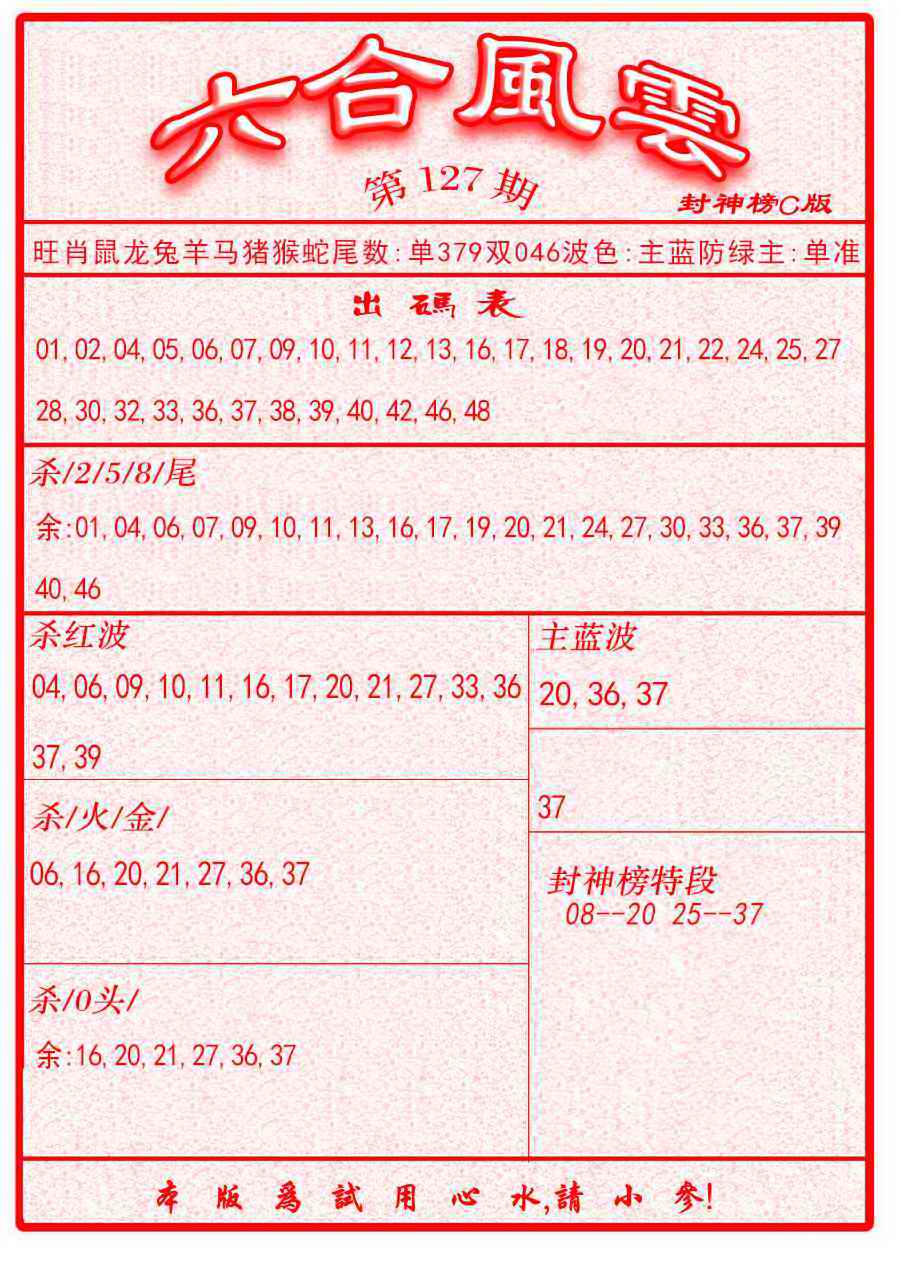 1460 封神榜B 1461 六合风云A 1462 六合风云B 1463 曾道人内幕泄密
