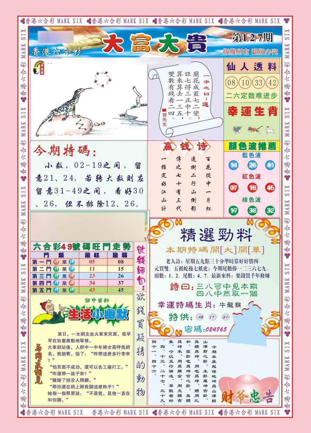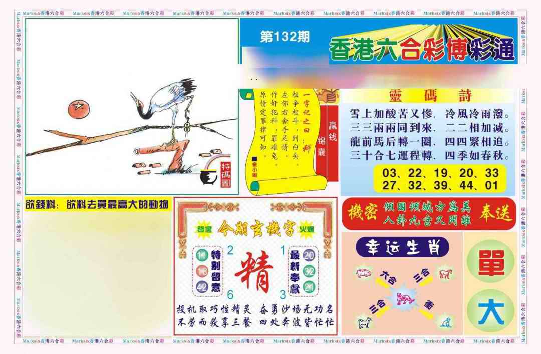 1760 大富翁 1761 侨乡狂扫黑庄 1765 马经王牌料 1766 香港马会专刊A