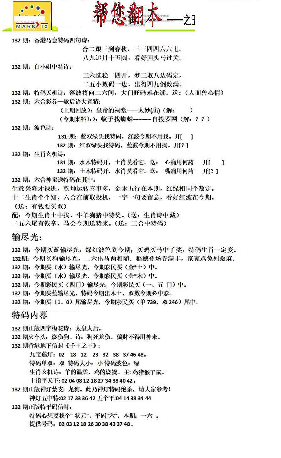 361 大财经发财图 577 金旺旺信箱 553 九方大师 156 内部透码(信封)