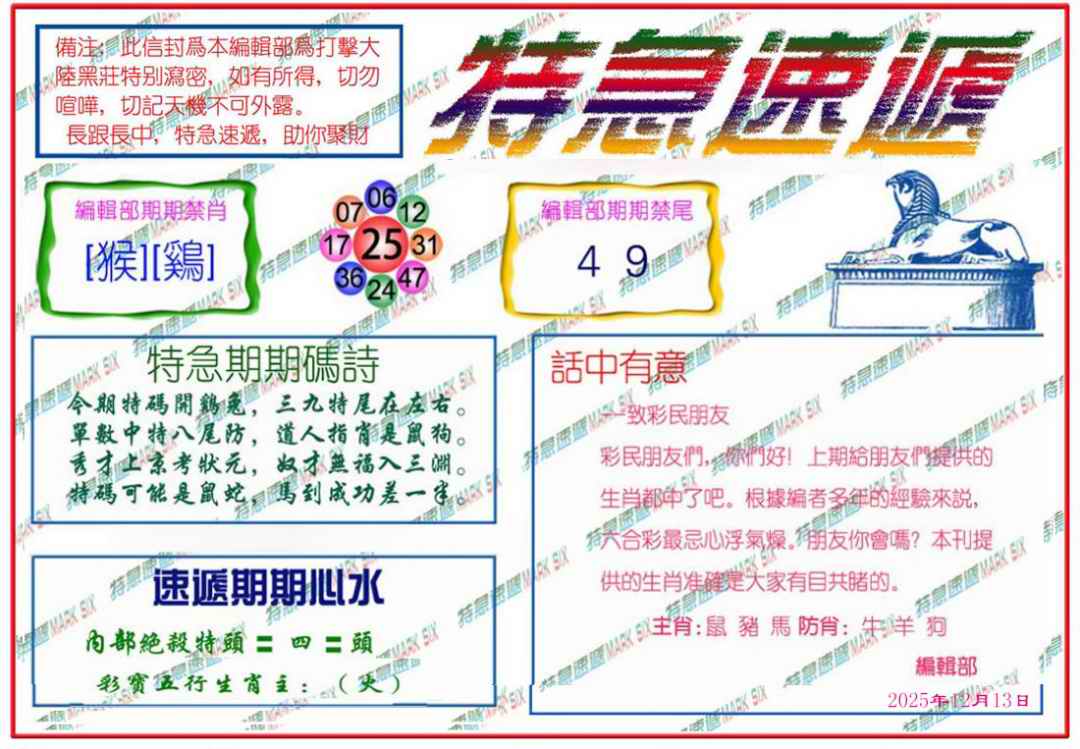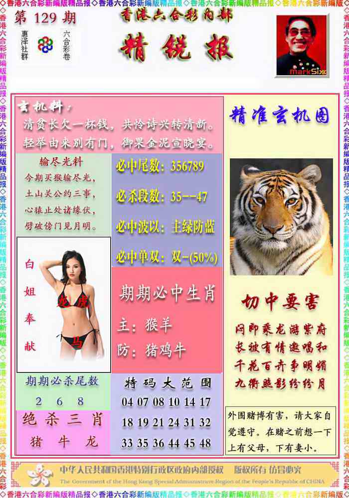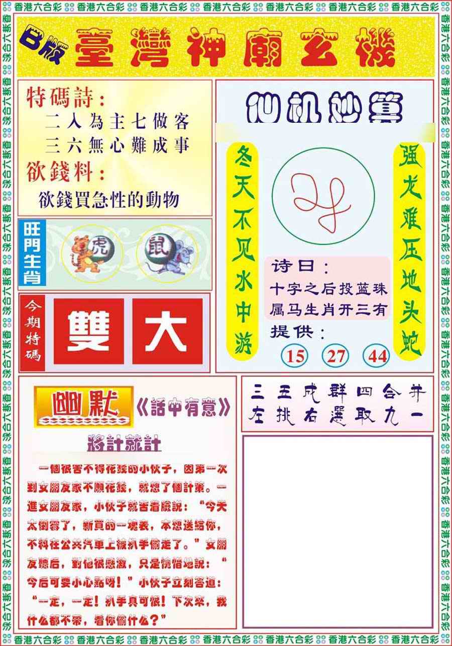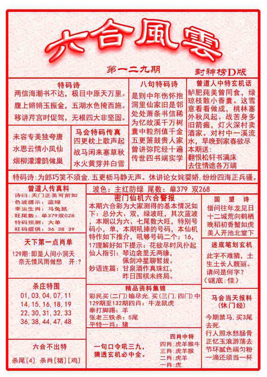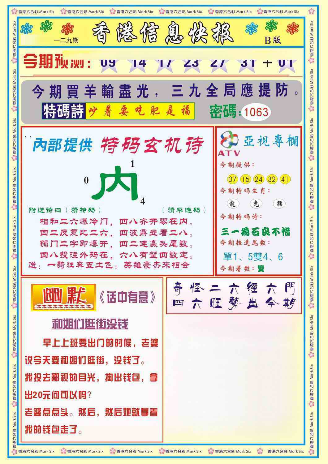 063 六合禅机A 064 六合禅机B 069 特 新 报A 070 特 新 报B