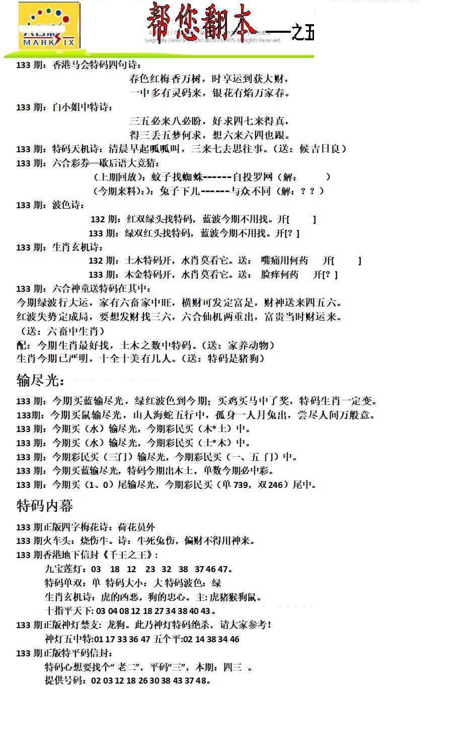361 大财经发财图 577 金旺旺信箱 553 九方大师 156 内部透码(信封)